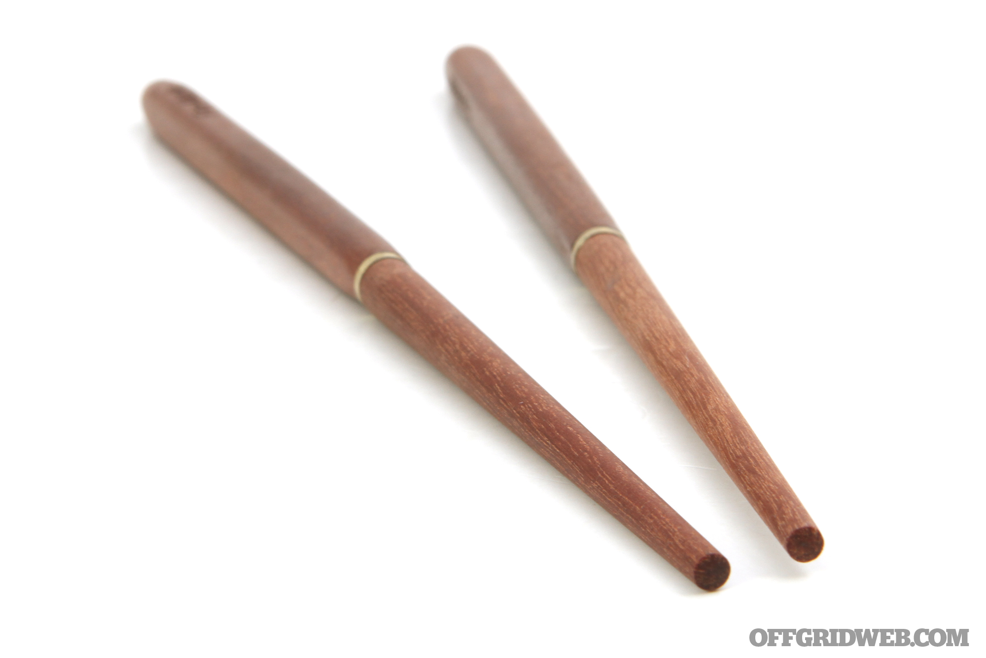 The far half of the chopsticks has a square profile, preventing them from rolling amok. It comes with a small carrying case and a carabiner. What more can we say? If you like chopsticks, these would be a great addition to your kit. If you have an Asian market nearby, check it first; you might find better deals there.