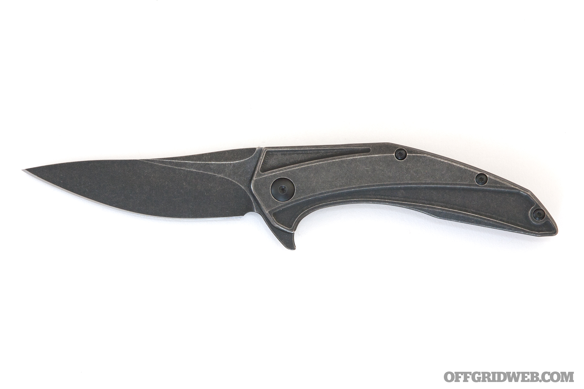Looking like it escaped a biomechanical Engineer spacecraft from the Alien movie franchise, the Brous Blades Parallax is a sleek premium folder with a price some may consider equally out-of-this-world. This knife is available in four finish options — satin, stonewash, blackout, and acid stonewash. Our sample features the last and most costly finish, and we think the dark, weathered appearance perfectly complements its sinister shape. The handle is constructed from 3D-milled 6AL4V titanium, with a frame lock and ultra-smooth ceramic detent ball. The slim upswept 4-inch blade is formed from durable D2 steel, and includes a flipper for quick opening.