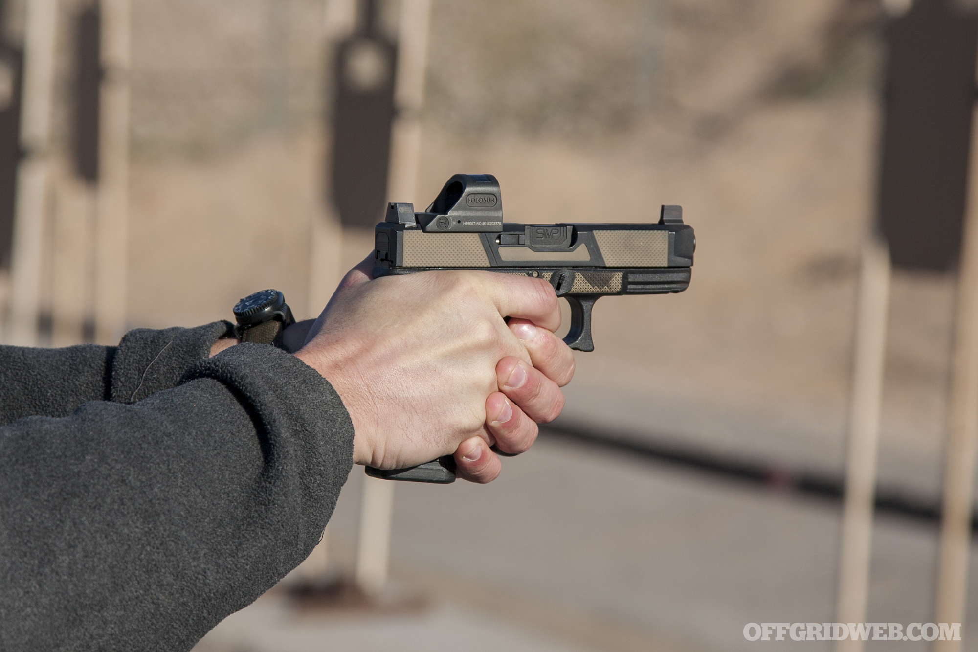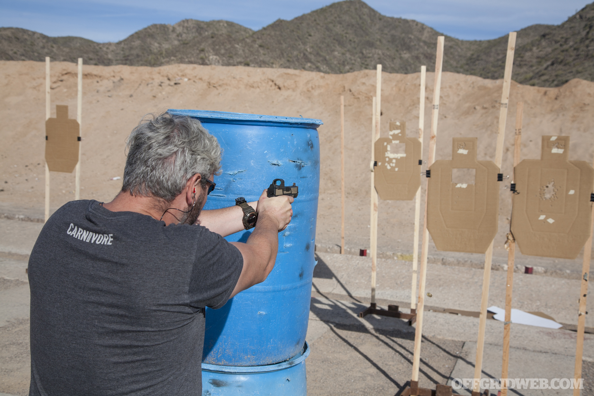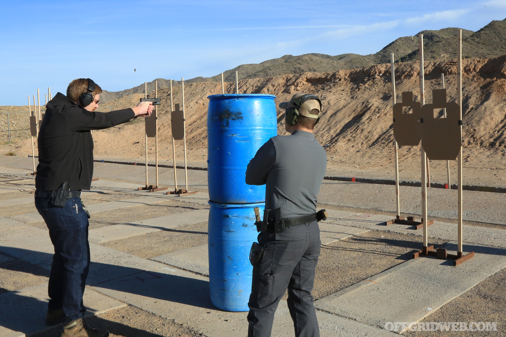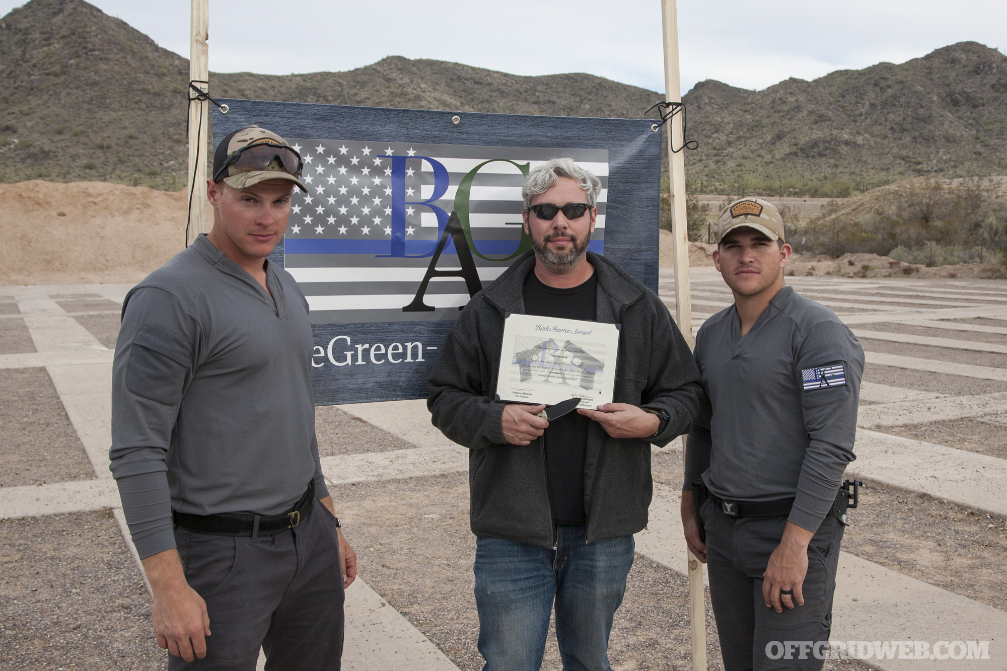 For one of our first steps in this educational journey, two members of our staff — myself and OFFGRID’s head Editor, Tom Marshall — attended a two-day Dynamic Marksmanship pistol class here in our home state of Arizona. The class was taught by Blue-Green Alliance, a firearms training company founded by two Force Recon Marines named Josh and Gabe.