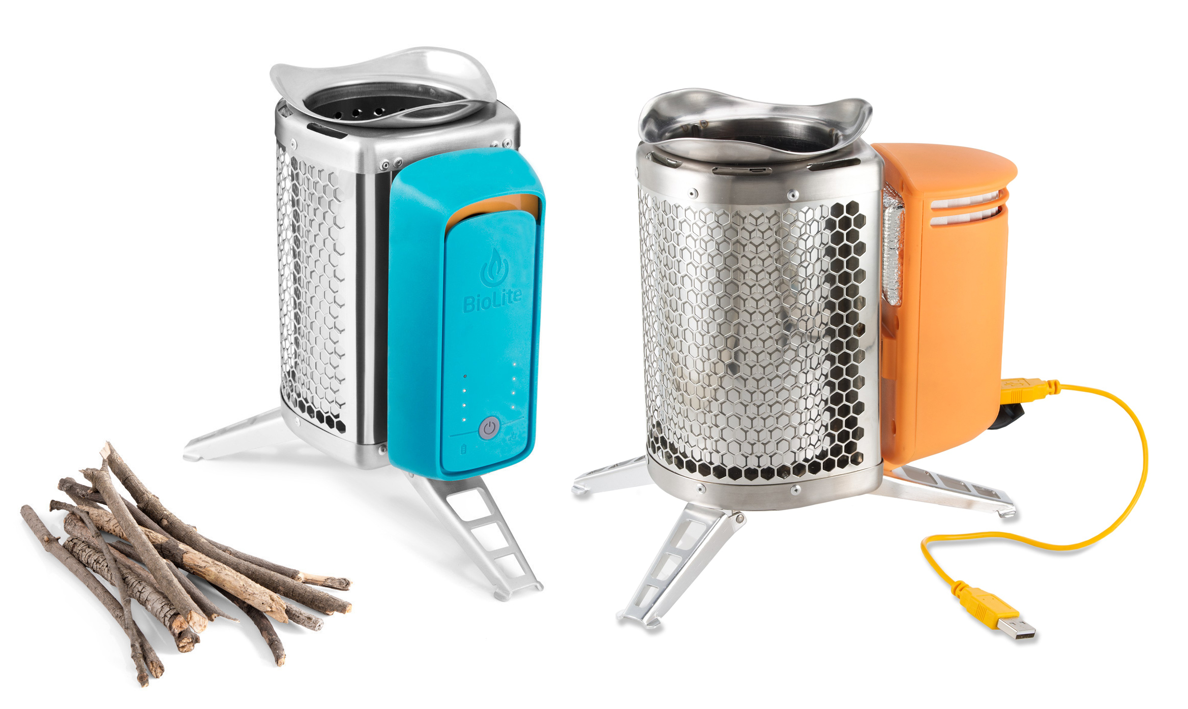 BioLite produces a pair of compact, portable wood-burning camp stoves. First, there’s the BioLite CampStove (not the most creative name we’ve heard). This model not only produces a small and efficient fire from twigs, it uses this energy to charge electronic devices via a USB port.