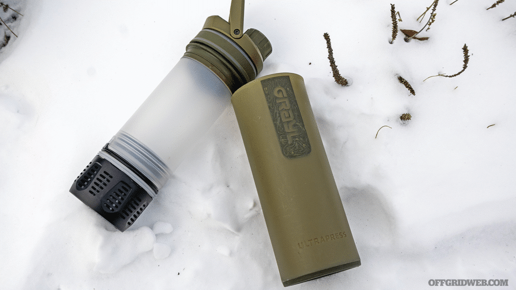 Stored water can freeze in our packs if exposed to freezing temperatures, so it is best not to leave your get home bag in your vehicle. When traveling outdoors on foot, the water should be packed closest to your body to help prevent freezing.