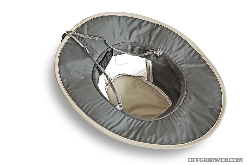 The Charter hat offers a 3 1⁄4-inch brim that tapers down to 2 3⁄4 inches at the sides, and contains a layer of foam that’ll keep your hat from sinking if you drop it in a body of water. Examining the base of the crown reveals Sunglass Lock slits, which can retain your shades when you’re not wearing them, provided the earpieces are straight. The inside of the Charter hat contains a soft moisture-wicking sweatband, an adjustable cinch strap to tighten the fit, and a pocket that spans the entire length of the crown. Although the chin strap is sewn into the sweatband and cannot be removed, it can be tucked into this pocket when it’s not needed — along with any other valuables you may want to conceal.