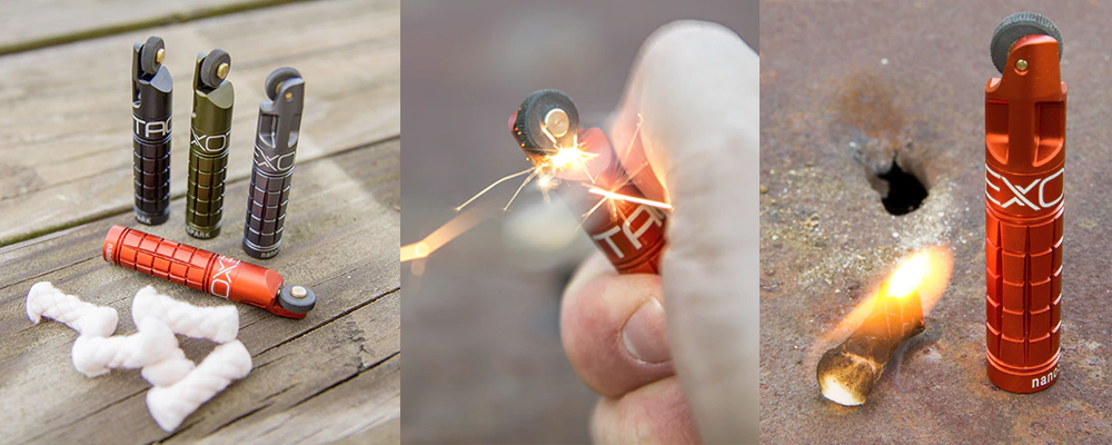 Today, EXOTAC released a new fire-starter called the nanoSPARK, and launched a Kickstarter campaign to fund its production. The new American-made EXOTAC nanoSPARK is a compact sparking device which fits on a keychain, and can be operated with one hand. Rather than a ferrocerium rod and scraper, it uses a flint wheel design. Anyone who has used a cigarette lighter should be familiar with this mechanism — it’s even compatible with standard Zippo lighter replacement flints.