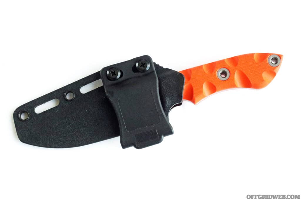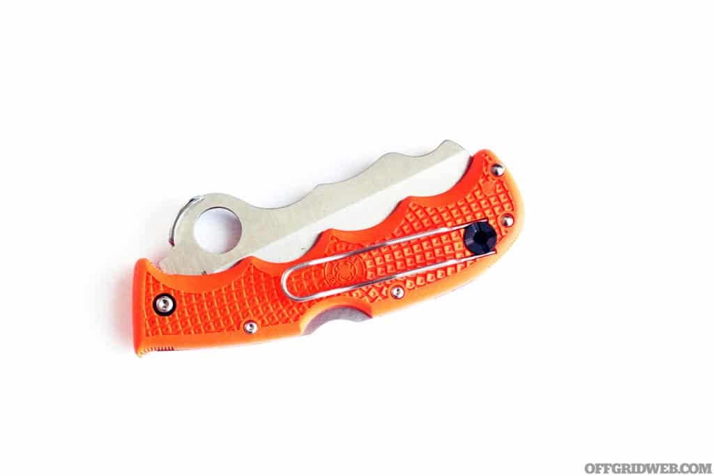 SOG’s Ether FX is one of those knives that’ll be a favorite with hikers, hunters, and anyone who must minimize the amount of weight that they’re carrying. This small and handy fixed blade comes with a high-tech-looking sheath that works better strapped to a pack as opposed to a belt mode of carry. It’s a very well-thought-out design from the perspective of a minimalist-style blade with plenty of dimples and jimping for tactile manipulation. Its orange scales should prevent you from losing it on a hike or mountain bike ride when you backtrack and see it laying wherever you might have dropped it.