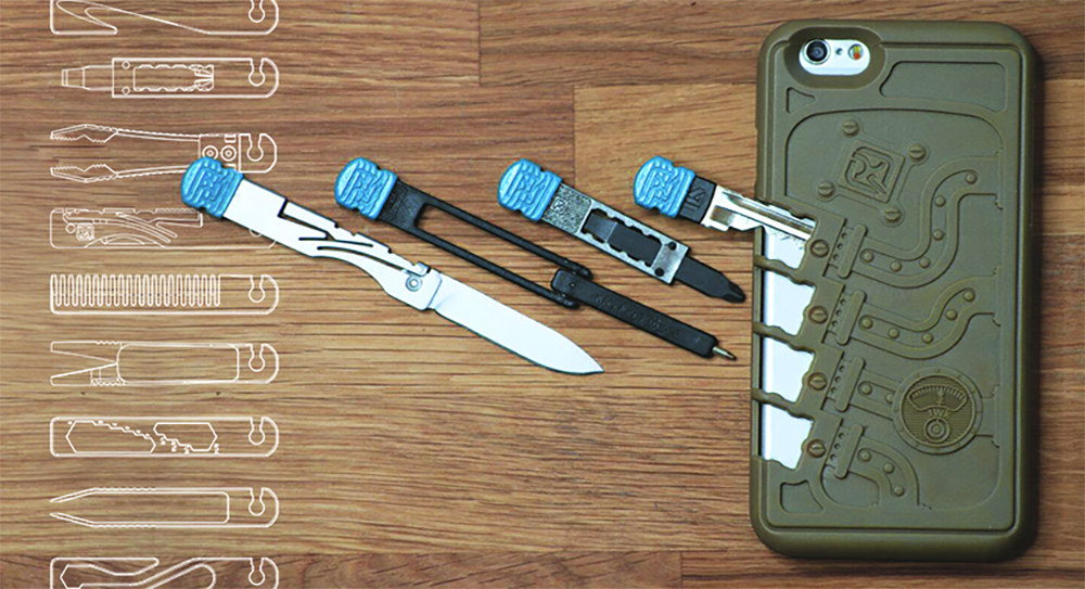 Tool options include: belt cutter, fire starter, folding knife, Kwikset and Schlage blank keys, pliers, Philips/flat screwdriver, tweezers, comb, flashlight, Griffin pocket tool, pen, pocket clip/bottle opener, scissors, straight razor, and hex wrench. That’s a whole lot of versatility in a small package, and with the mix-match format, you won’t be stuck carrying extra tools you never use.