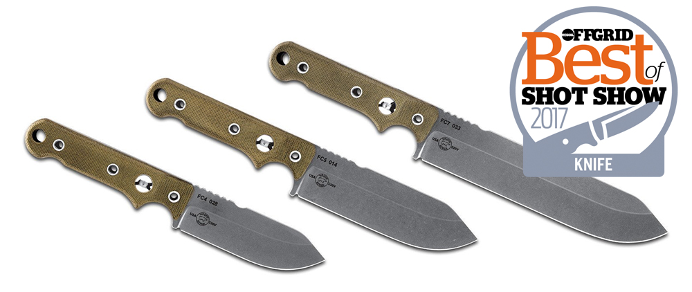 Three no-nonsense survival blades, with 4-, 5-, and 7-inch options to choose from. Each S30V stainless knife includes a divot for use with a fire-bow as well as a striking notch for use with the included ferro rod. Each knife also includes a leather sheath, which retains the knife and ferro rod.