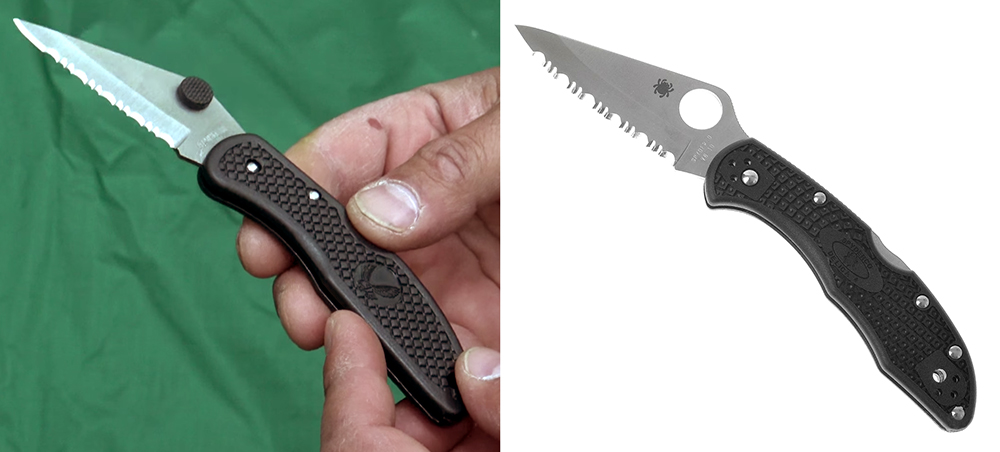 The dollar store knife bears a sliiiiight resemblance to a Spyderco. You may have to squint to see it.