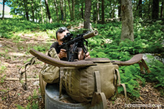 The 5.11 Tactical RUSH100 backpack and this scoped AR-15 rifle are perfectly paired for the “if I can only grab one” disaster scenario.