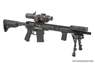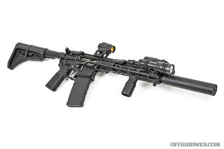 This 11.5-inch suppressed SBR features an ambidextrous billet receiver set, night-vision-height red dot, and IR laser/illuminator setup.