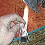 The finished sizes are approximately (four) 36-inch pieces and (four) 12- to 16-inch pieces. You’ll also need a roll of painter’s plastic drop-cloth, some 2½-inch drywall screws, short screws (½-inch), and some staples for your staple gun. Some sort of mesh covering to keep the chickens inside the small pen and the roof of the hen house (approximately 4×8 feet) may also be desired when you put them inside their permanent home. Bring the punch angle, short screws, staples, and the cut wood into the room with the chickens along with the staple gun and screw gun.