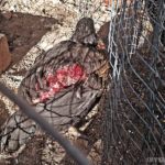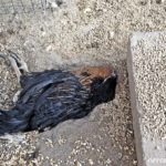 On the first day of this process we supervised closely for about an hour and left them alone for a short time to integrate. The Dark Cornish was brutally attacked by the six older hens, removing feathers, flesh, and tissue. We separated them immediately and put the Dark Cornish in solitary confinement to let her heal. Yet, she intentionally flew over the barrier to be with the other chicks. They continued the assault, so we separated her again. The Dark Cornish once again flew over the barrier into the area with the grown hens. Not surprisingly, she was killed.