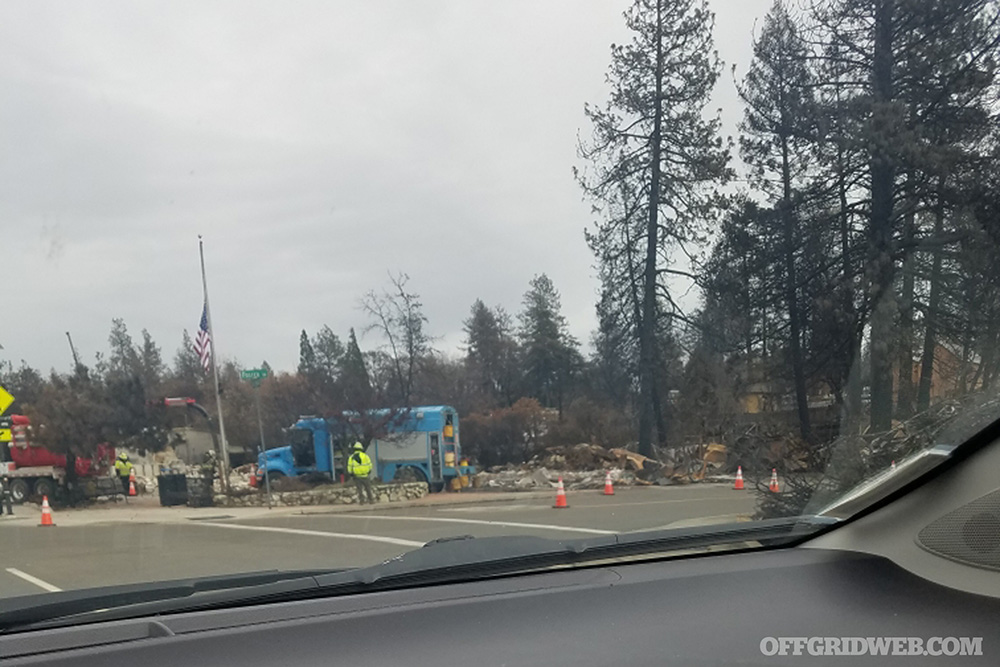 RB: Everything we’ve heard, the police are there. The National Guard was here too and they had an extremely strong presence and weren’t letting anyone in. Supposedly they were up there patrolling, but Paradise is very rural and if you know the area you can get in. We know people who have gone back in and they say it takes about eight hours to get up the hill and work your way around, but you can get in. They can’t just close off the entire town. The terrain is too rugged and they can’t possibly defend everywhere.
