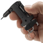 Knife — A heavy-duty fixed blade constructed from thick carbon steel with a durable and sharp edge. It includes a kydex sheath and ferro rod/magnesium bar backup fire-starter.