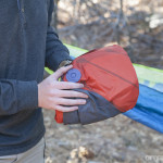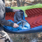 We unpacked the bag from its 13″ x 7″ stuff sack, and unzipped the full-length zipper before laying it out atop the Hammock V pad.