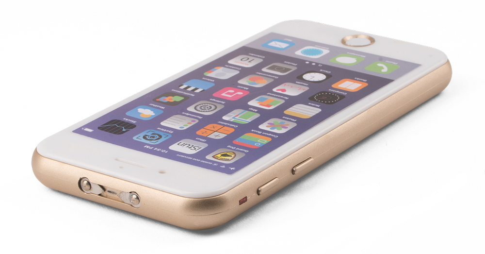 The Guard Dog iStun 2 is activated by a button that appears to be the phone’s power button. Pushing this button produces a burst of high-voltage current across two low-profile prongs at the top of the “phone”. Guard Dog Security claims this power is “capable of temporary incapacitation”. There’s also a built-in LED light on the back side of the device, which can be activated by another button in place of the volume control.