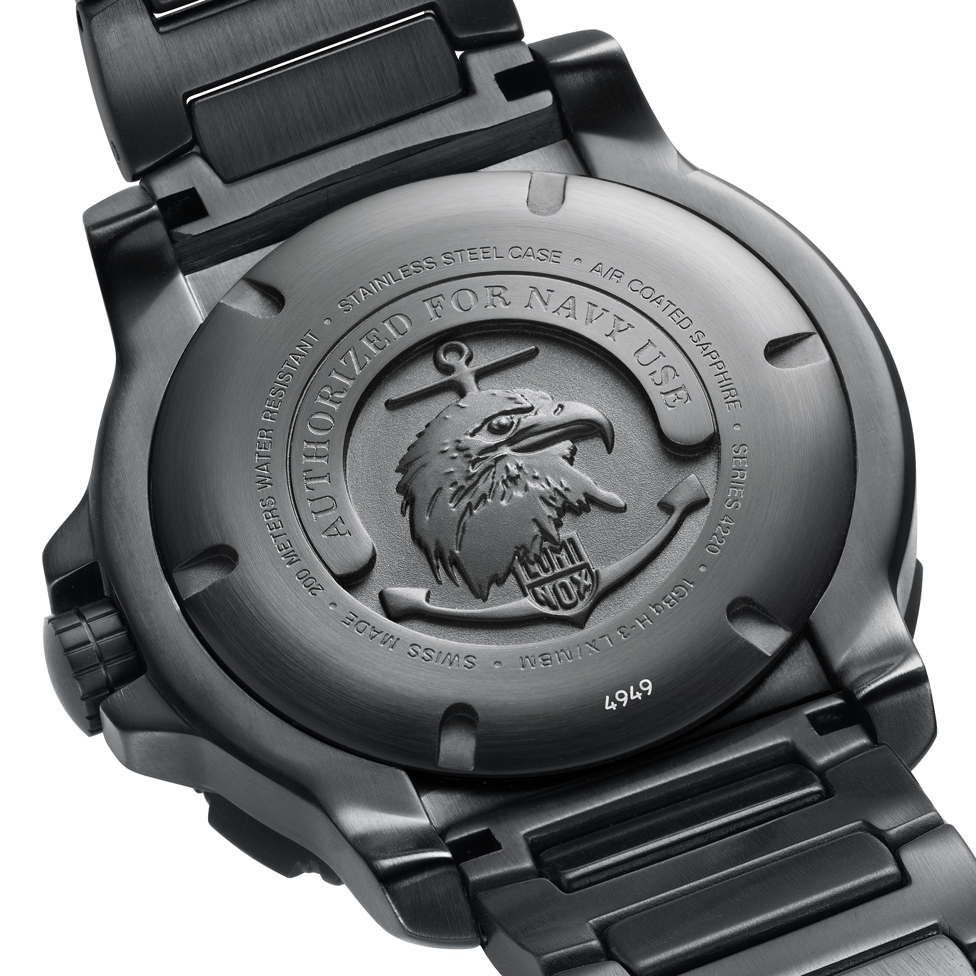 First in the list of new models are the Authorized for Navy Use or ANU 4222 (top) and 4242 (bottom right) watches. Both are 45mm designs with quartz movement, and fall into Luminox’s Sea Series. These watches offer 200-meter water resistance and a new stainless steel strap design. Existing models offer rubber and nylon straps. The 4222 features time and date functionality, and retails for $795. The 4242 offers full chronograph/date function, and retails for $1,100.