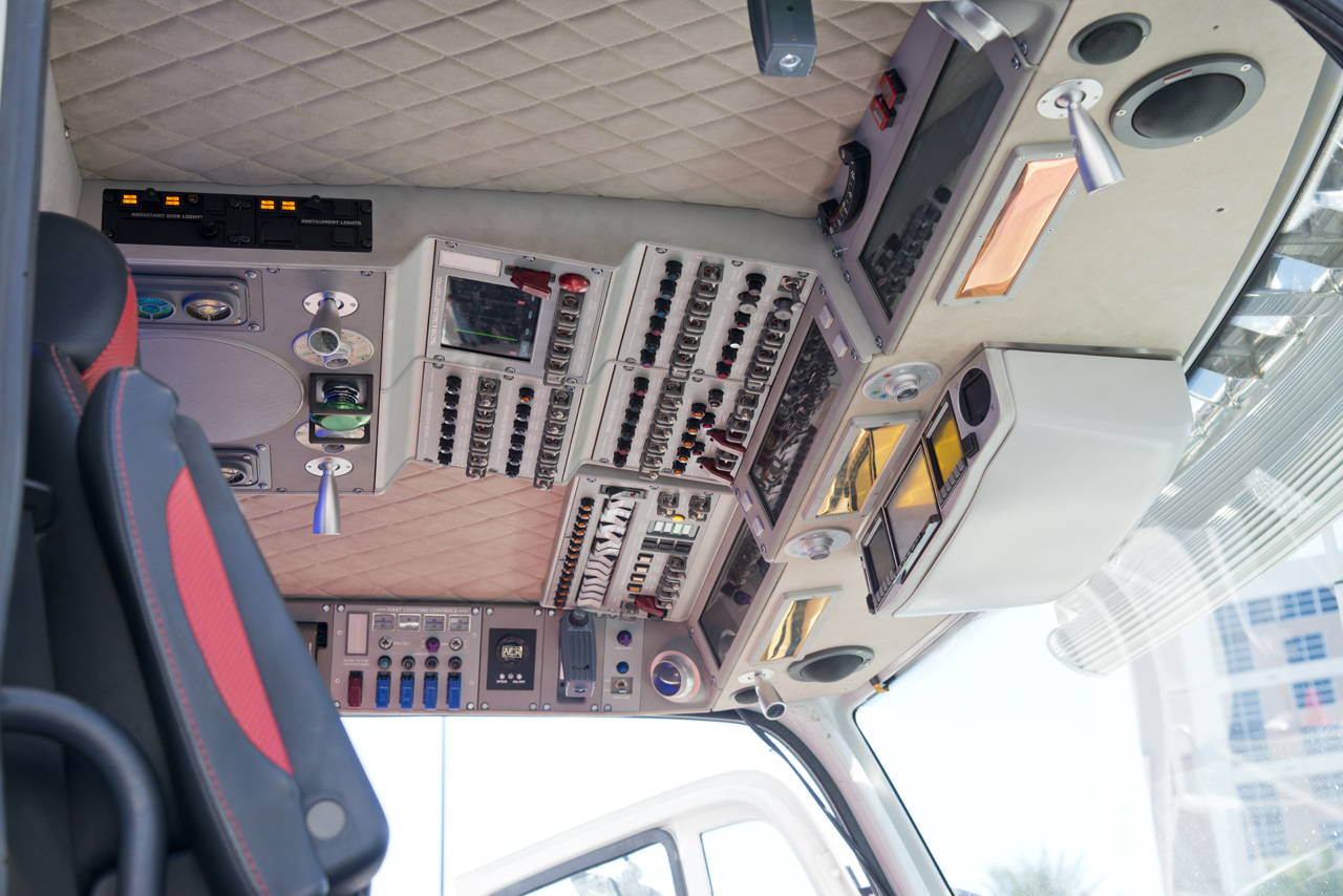 The rear of the tractor’s cab contains more buttons and monitors, primarily for the security cameras and optics. Ferren says he intended the vehicle to be operated by a crew of three, and with the number of high-tech systems on this truck, we imagine everyone would be kept busy.