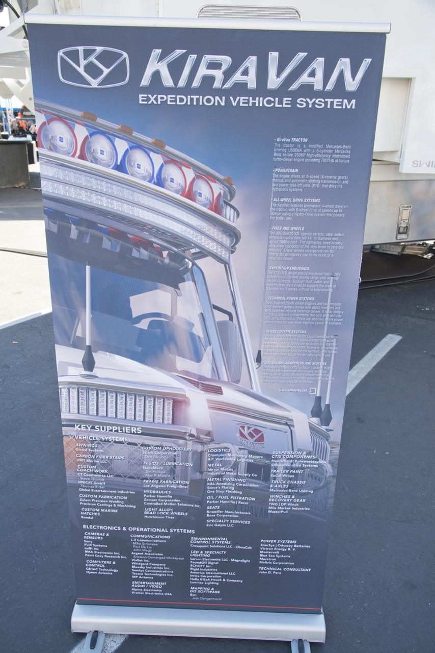 We first spotted the KiraVan at the SEMA Show in Las Vegas, and immediately wanted to learn more about it. The KiraVan is what Ferren calls a “natural progression” from his last project, the MaxiMog, which began in the mid-1990s and was completed in 2001. The MaxiMog is a modular expedition vehicle and trailer, built by UNICAT in Germany to Bran’s unique specifications. The MaxiMog is enormous in its own right, and is based on a 4×4 turbo-diesel Mercedes-Benz Unimog truck. Most people would be more than satisfied by a vehicle of this caliber, but after 15 years, Ferren decided it was time to take it to the next level and build something even more advanced.