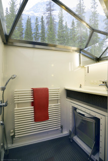 The KiraVan is truly enormous, with a total length of 52 feet (7 feet longer than an average tour bus) and a maximum gross vehicle weight of 51,700lbs. At the front of the vehicle, a custom-built four door cab is packed with lights, brush guards, and antennas. It carries 170 gallons of diesel fuel, enough to travel up to 2000 miles without refueling, and it rides on 46-inch-tall off-road tires with a central inflation system (similar to that found on US military Humvees). The truck’s fuel tanks are even heated for use in temperatures as low as -30F, and are filtered to accept biofuel or used vegetable oil. The variety of antennas allow for communication from anywhere on earth, as well as aircraft-grade global positioning so the truck and crew will never end up lost.
