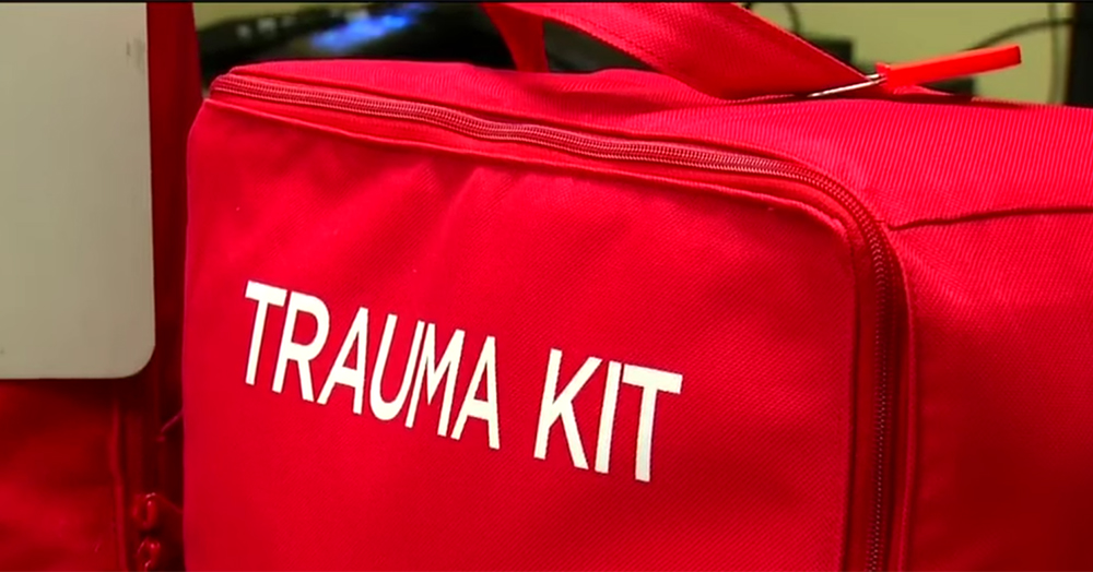 - A trauma kit would contain at least two tourniquets, two pressure dressings, four chest seals, instructional documents, and other related medical equipment as approved by local law enforcement or first responders.