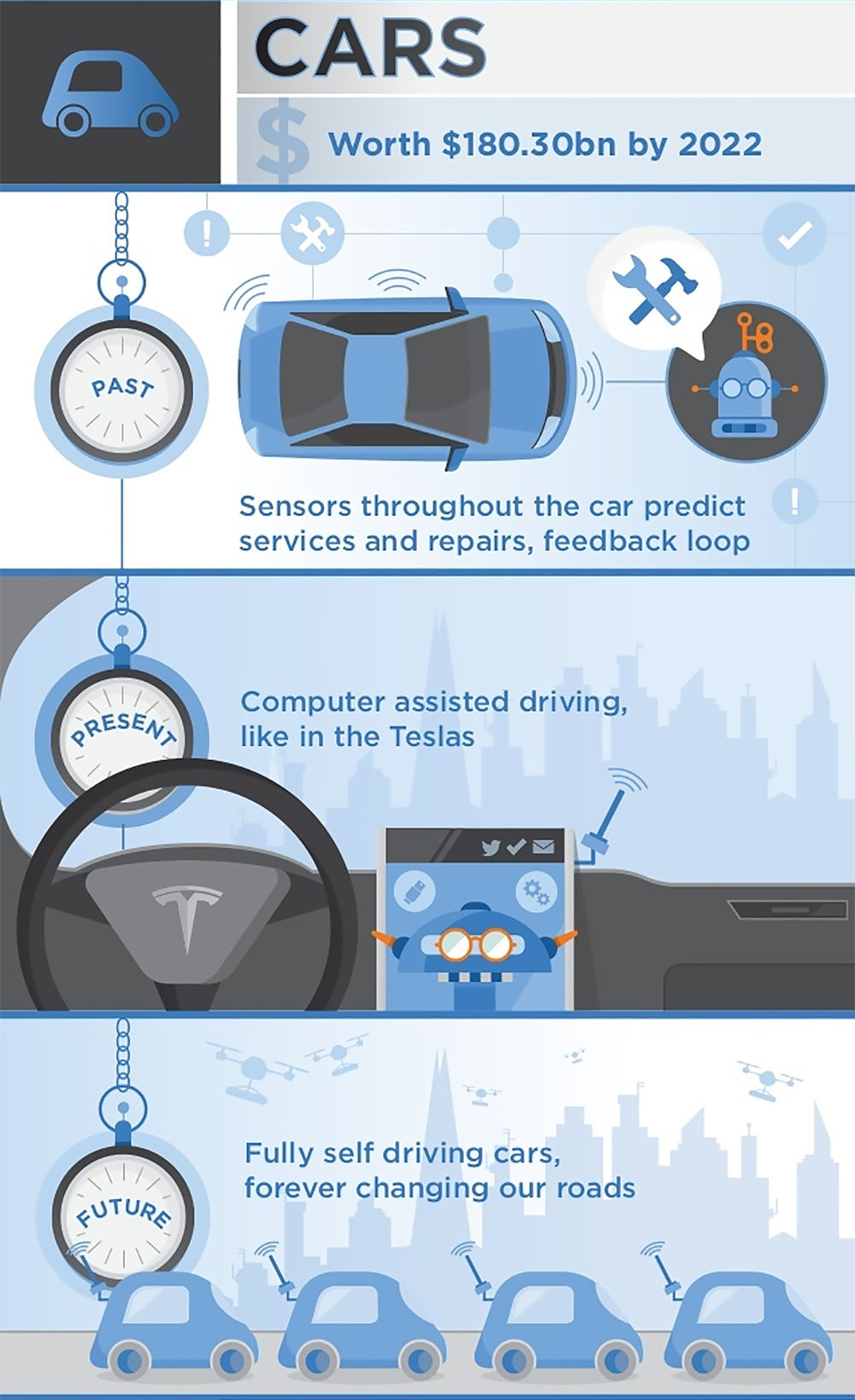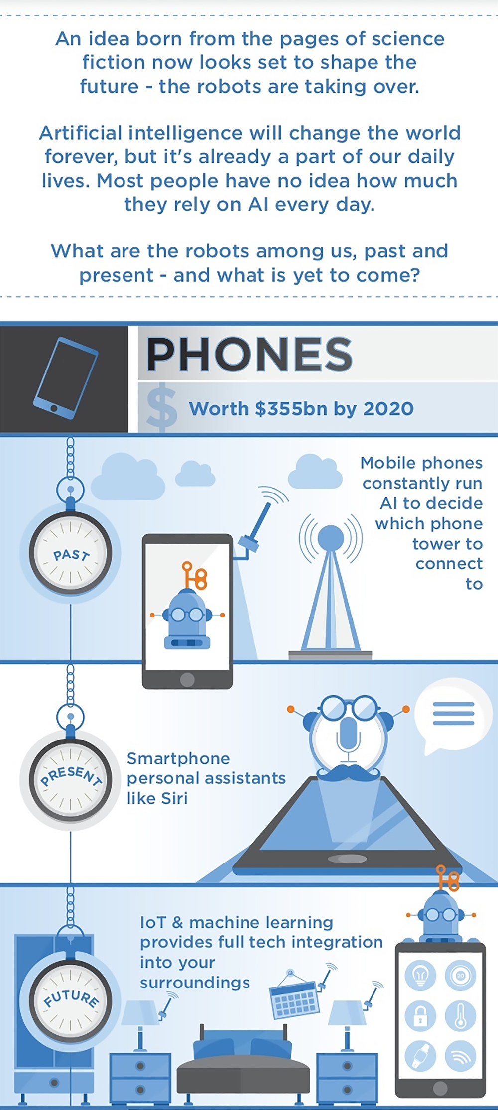 The following infographic from Interquest Group shows how AI has been used in the past, is currently applied in the present, and will likely be implemented in the near future. Click here for a full-size version of this infographic.
