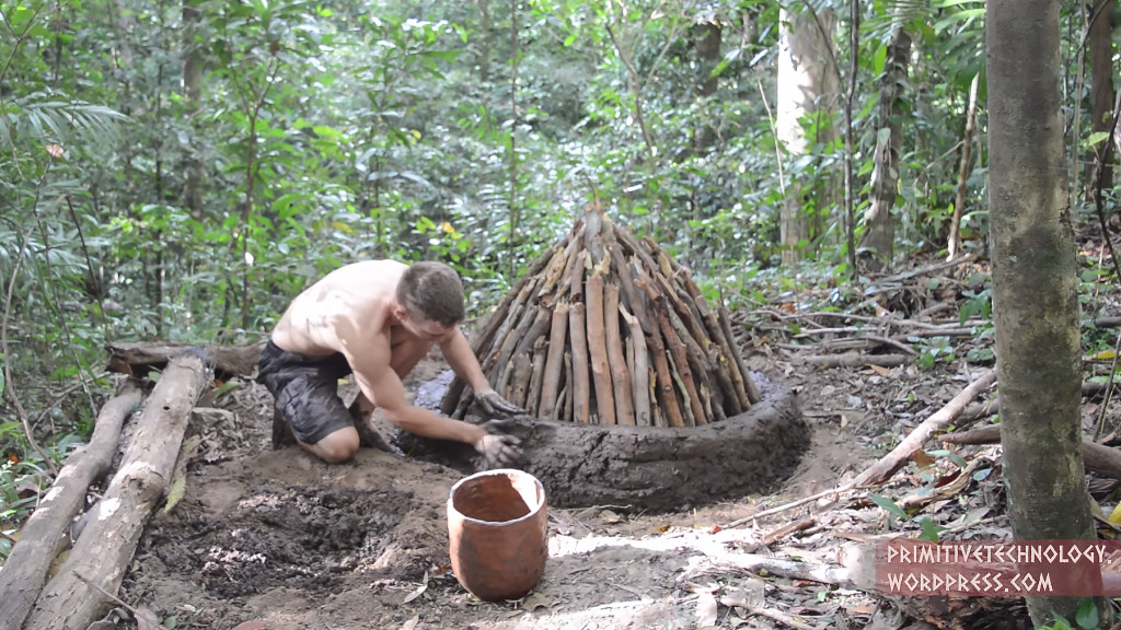 In the following video, the host of Primitive Technology shows how to build a simple charcoal kiln from mud. The kiln features eight small air intake holes around the base, and one exhaust vent at the top. The wood pile inside the kiln is ignited through the top hole, and each intake opening is sealed as the fire burns down towards ground level. Finally, the exhaust hole is sealed and the kiln is left to cool overnight. After carefully carving an opening into the side of the kiln, the charcoal can be broken down and removed.