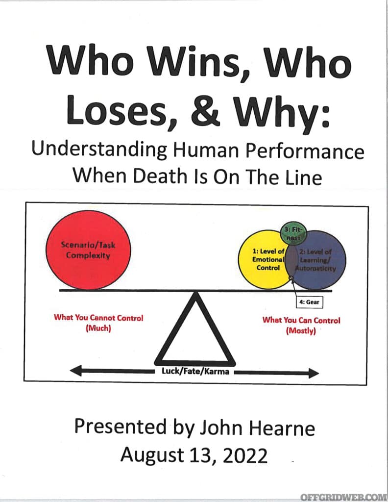 Most of the training events we cover in this column are courses on how to shoot — whether it’s long-range shots with rifles, fast strings with pistols, or how to manage the oft-intimidating self-defense shotgun. This one is a little different. Last summer, we had the opportunity to attend two lectures put on by career LEO and firearms trainer John Hearne. Hearne has dedicated a significant amount of time to high-level academic research in some topics that may, at first glance, sound dry to the average shooter. These were full-day lectures, with zero range time and a lot of very in-depth technical and historical discussion. We don’t say any of this to dissuade you from his courses. On the contrary, we highly recommend you attend any of his lectures if you ever have the chance. The first was Who Wins, Who Loses, and Why — an in-depth look at a range of factors pertaining to how human beings are biologically programmed to react under life-threatening stress, and how to build effective training programs around those factors. The second was Defeating Violent Criminals, which focused on some historical case studies of the worst-of-the-worst bad guys, and how much a motivated criminal can accomplish when they apply their nefarious worldview and skillset.
