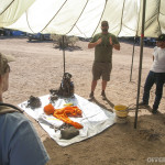 So, what happens if you run out of water? It’s unlikely that you’ll come across so much as a trickling creek in the scorching desert heat — purifying water from stagnant puddles with the methods above may be the only course of action. If that fails, Colin showed another method of obtaining water: a solar still.