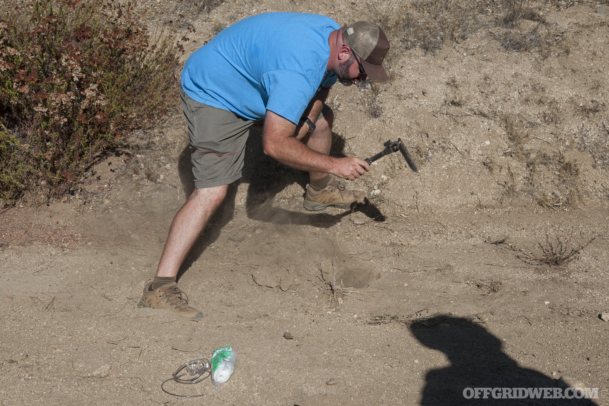 So, what happens if you run out of water? It’s unlikely that you’ll come across so much as a trickling creek in the scorching desert heat — purifying water from stagnant puddles with the methods above may be the only course of action. If that fails, Colin showed another method of obtaining water: a solar still.