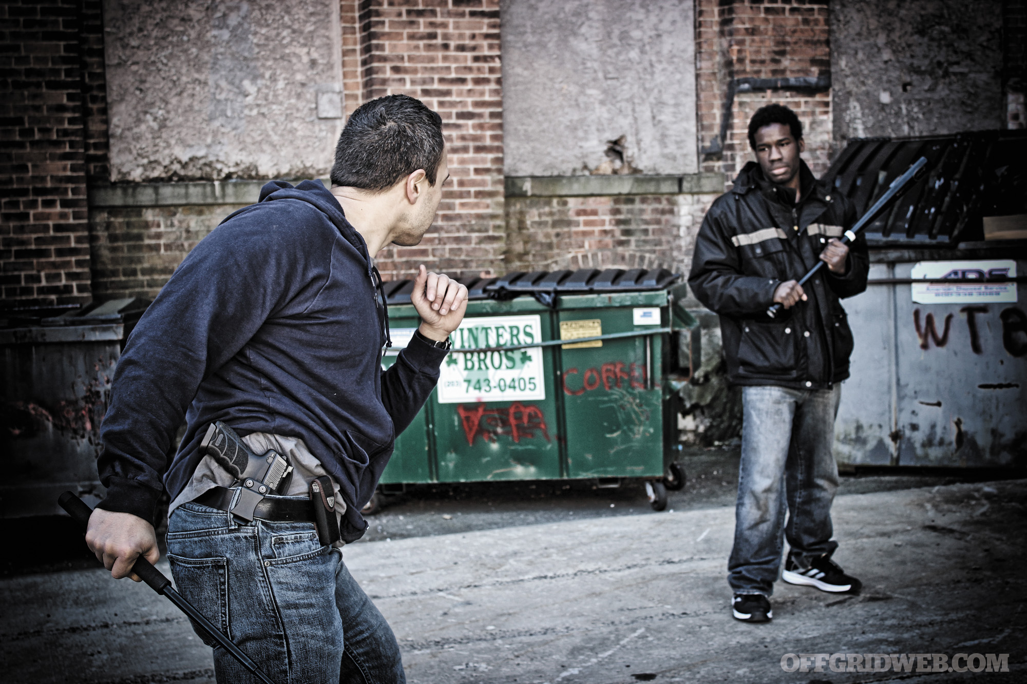 Above: In a street fight, there are no rules. This includes staying out of the optimal range of their weapon. Understand the “sweet spot” of a long-range weapon and the timing of when to close the reactionary gap.