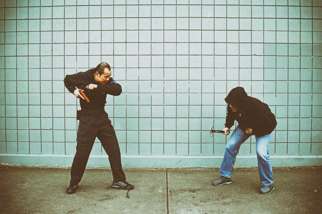 A hammer attack is no joke. Conrad Bui has no time to draw his firearm, so he must “fight to his weapon.”...