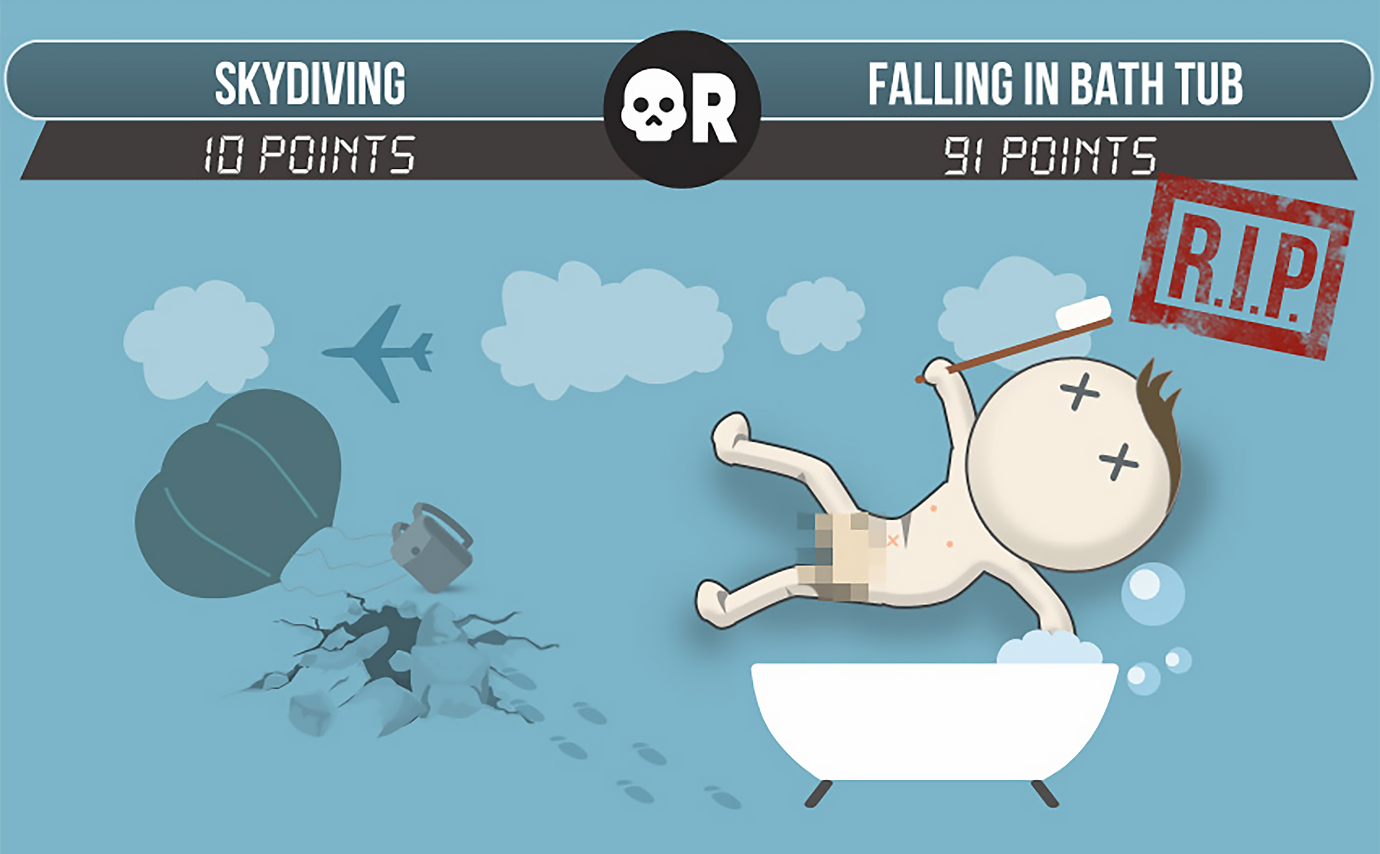 As boring as they may seem on the surface, statistics can help us to understand day-to-day risks, and to use this analysis to improve our odds of survival. And honestly, some statistics and probabilities can be pretty interesting in the right context. For example, the following infographic compares several unlikely causes of death, so you can properly understand the actual risk involved.