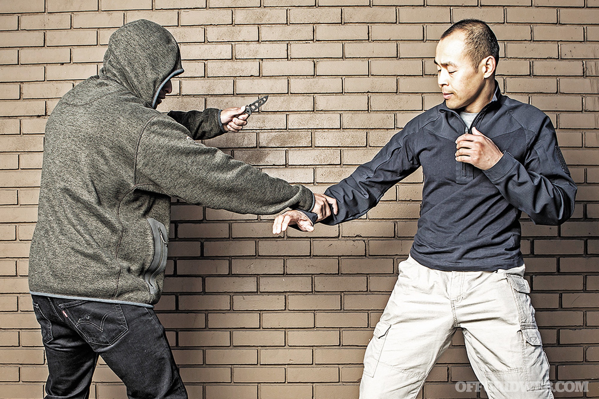 PV: Learn how to run. And fast! [Laughs.] In all seriousness, the best lesson to learn about knife attacks is to not get caught in one in the first place. One of the defensive tactics we teach is to avoid physical confrontations whenever and wherever possible.