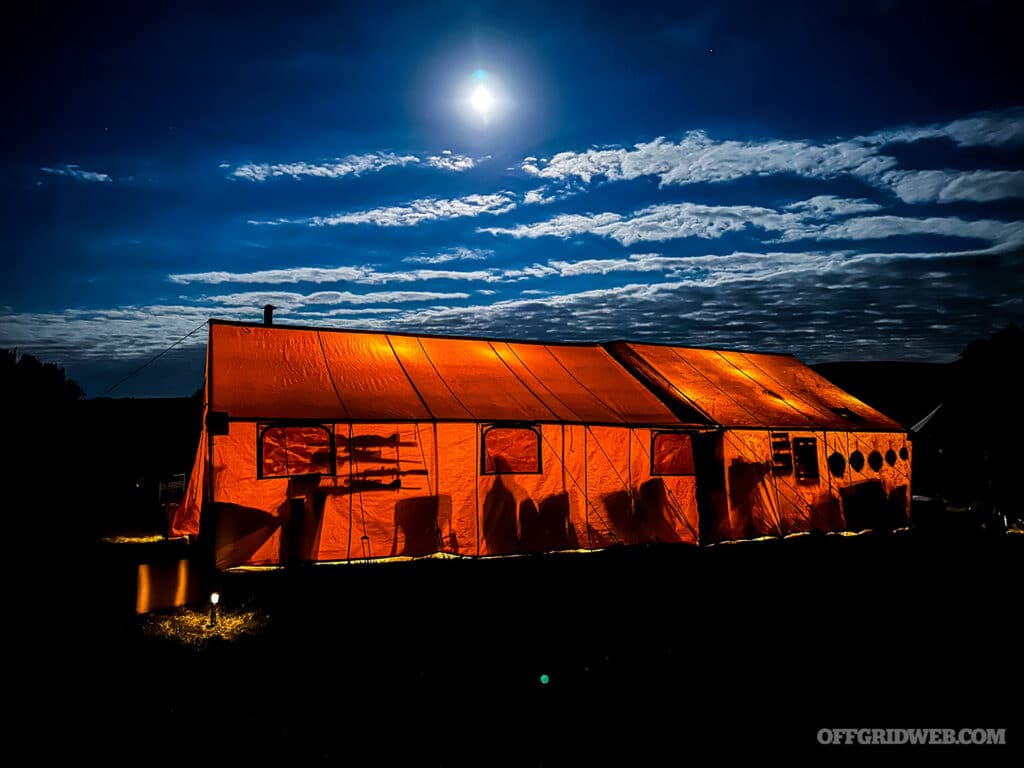 Nothing beats the nostalgia of a canvas wall tent. This is the commons area tent. Lots of laughs and meals were enjoyed here.