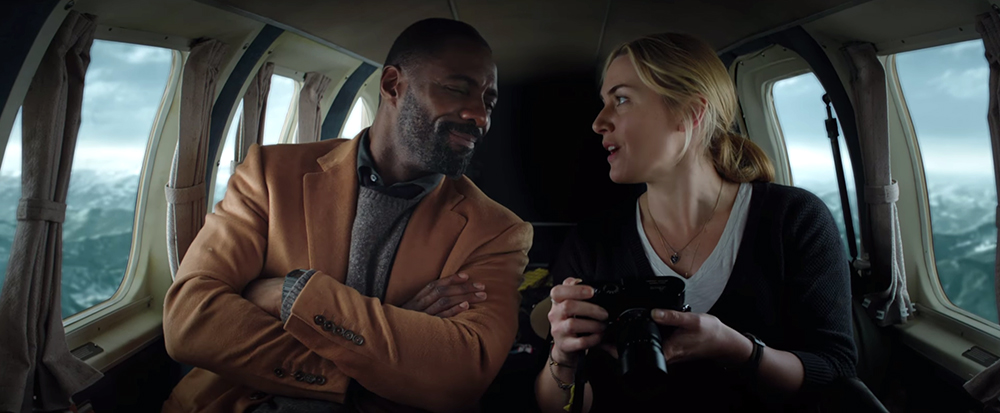 The Mountain Between Us features two travelers — a surgeon named Ben (Idris Elba) and a journalist named Alex (Kate Winslet). The pair coincidentally end up on a small prop plane headed over the Rocky Mountains, but the plane crashes, leaving them stranded together on a barren mountainside.