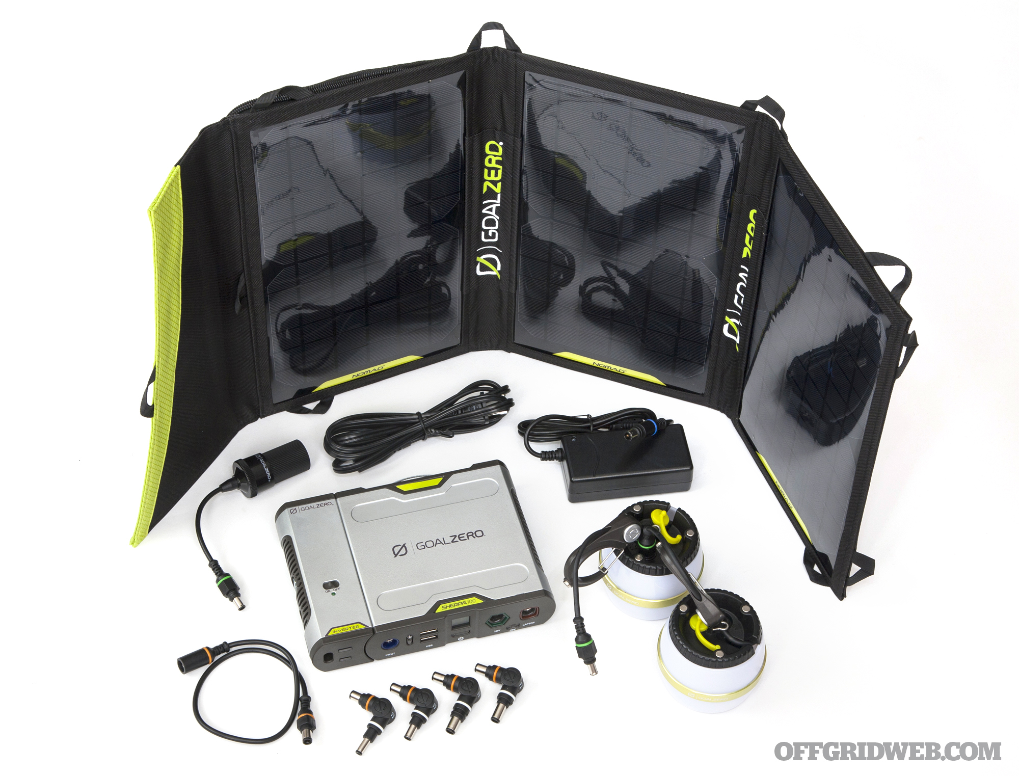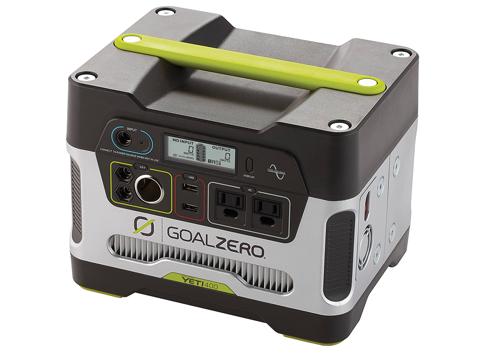 The compact Goal Zero Sherpa 100 solar kit with inverter costs $550, and provides 98 Watt-hours (Wh) of power.