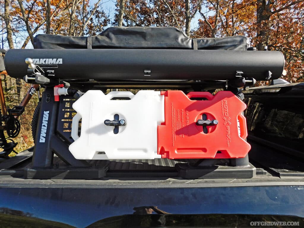 Between the passenger-side vertical towers, I installed a molle panel to enhance stability and provide all the utility options that a molle panel offers. In my case, I affixed a pair of two-gallon Rotopax mountable containers: one gasoline and one water. There aren’t many adventures where an extra few gallons of gasoline and water would not be needed or at least appreciated. The Lox Pack Mounts keep them securely attached to the panel while providing the security of keyed access.