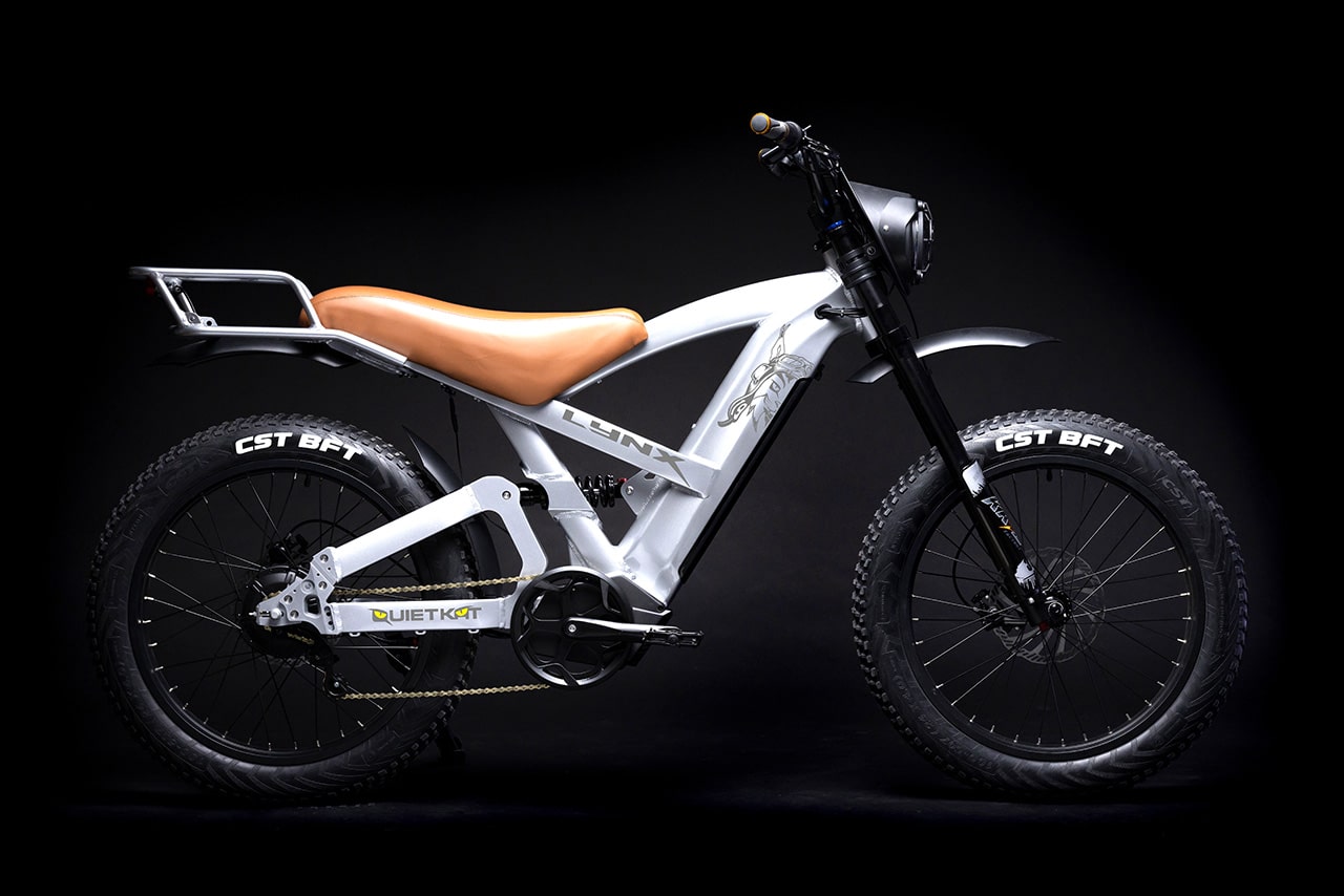 The new QuietKat Lynx also features integrated Bluetooth, cellular, and GPS tech that allow the user to remotely control features and track the bike in case of theft.