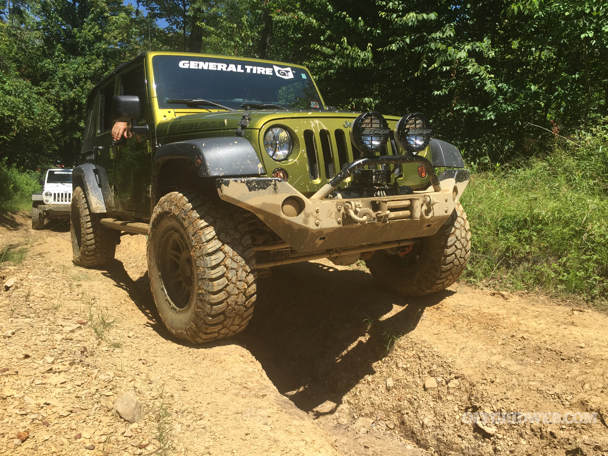Our adventure with the Grabber X3 started behind the wheel of one of over a dozen Jeep Wrangler Rubicons, all of which General had outfitted with their new tires. We then spent several hours in the backwoods of Pennsylvania, on an off-road course that included narrow forest paths, steep dirt ridges, deep ruts, mud, water, and an obstacle known as the Rock Garden. These tests were surprisingly challenging, both for our Jeeps and the tires themselves.